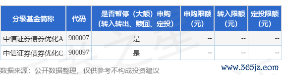 本站消息,6月19日中信证券资产管理有限公司发布《中信证券债券优化一年持有期债券型集合资产管理计划暂停申购(含转换转入、定期定额投资)公告》。公告中提示智赢策略,为了保证本集合计划的平稳运作,保护本集合计划份额持有人的利益,自2025年6月20日起中信证券债券优化一年持有期债券型集合资产管理计划暂停申购(含转换转入、定期定额投资),下属分级基金调整明细如下: